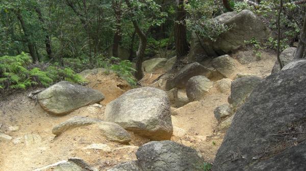 - 行者山は山頂までほぼ丸太階段で整備されています。 以降、剣尾山方面は自然道で道標もあり特に危険な個所はありませんでした。