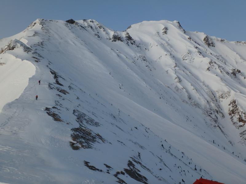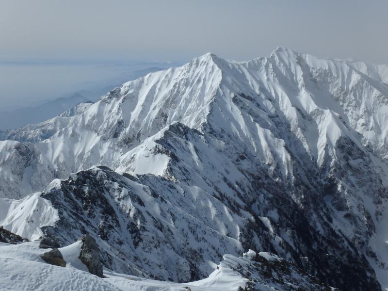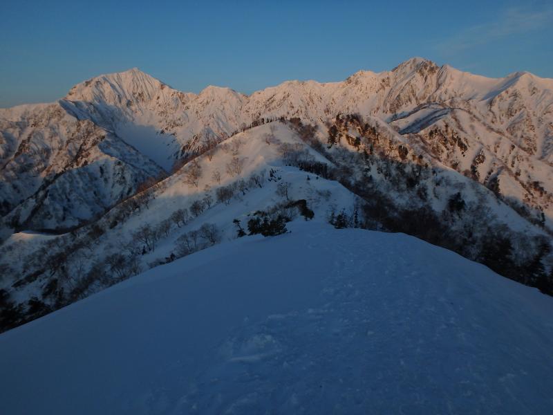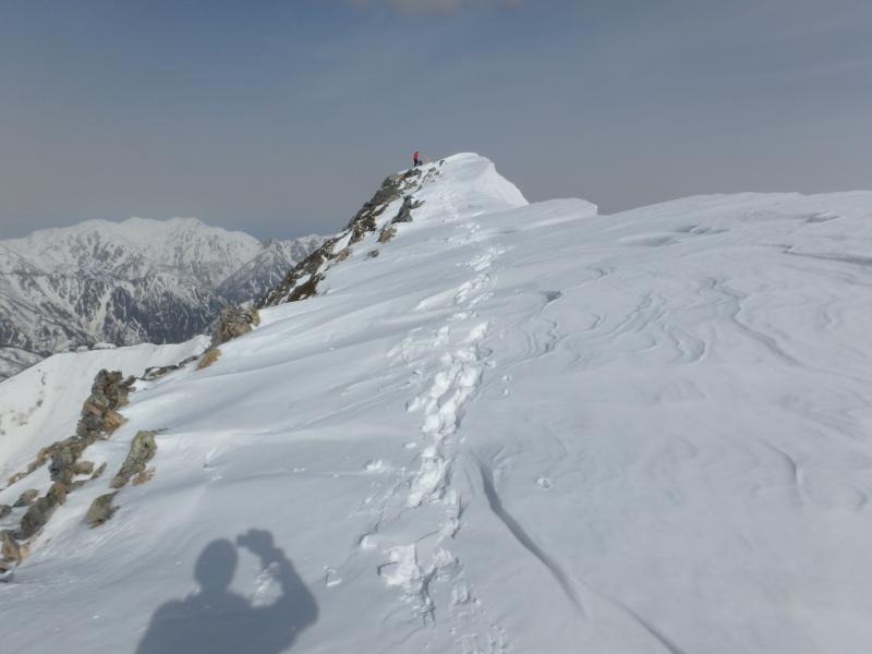この冬も遠見尾根から五竜岳・鹿島槍ヶ岳を撮影しようと計画しましたが、天候などのタイミングが合わず、今回が今シーズン初めての遠見尾根となりました。3連休が取れたため、五竜岳まで行ってきました。昨年の4月下旬に登った時には五竜岳山荘から頂上近くの雪壁前まで夏道が出ていましたが、今回は雪で覆われており、雪山らしい五竜岳を楽しむことができました。