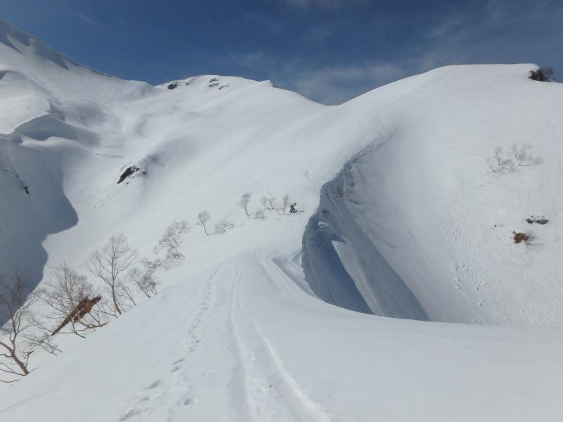 - コース全体に積雪があり、夏道は出ていません。雪に深く沈むことはなかったため、スノーシューやワカンは無くても良いと思います。