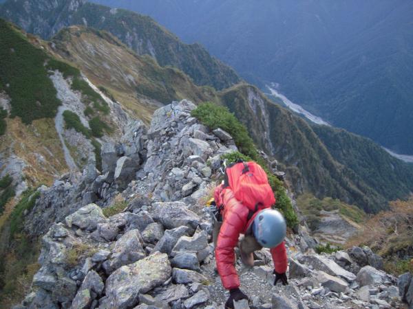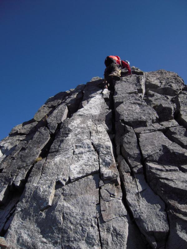 4峰はロープなしで登れますが、足場はザレており、浮石も多く、細心の注意が必要です。