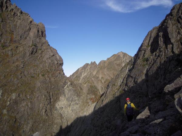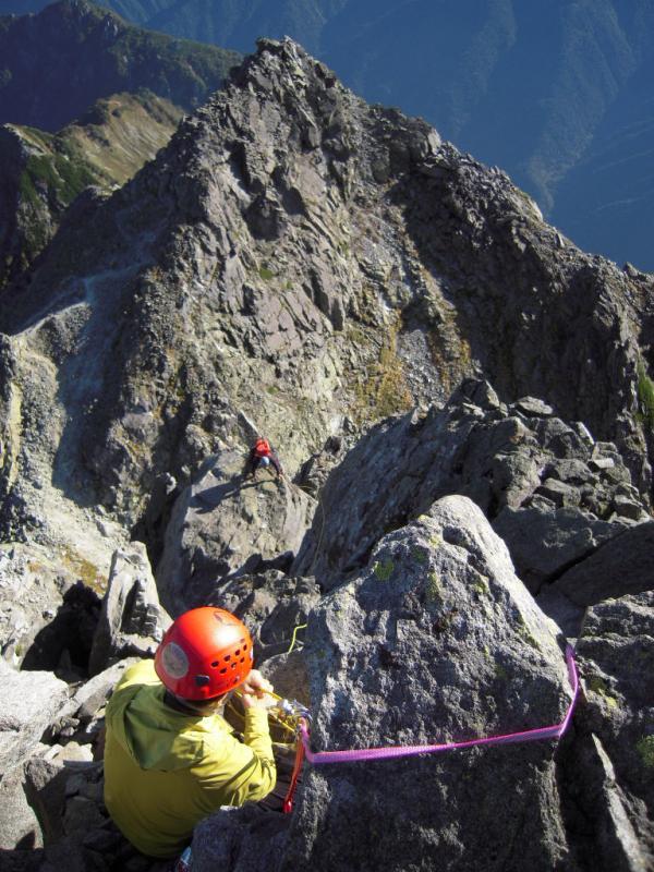 2峰の下りはクライムダウンもできるが通常は懸垂下降