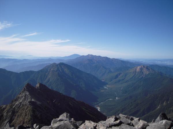 東に目を向ければ蝶・常念の向こうに八ヶ岳。