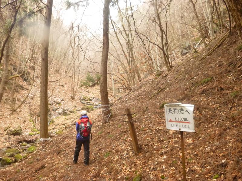 - 天狗岩登山口(35分)二俣(30分)天狗岩山頂(30分)おこもり岩(40分)天狗岩登山口