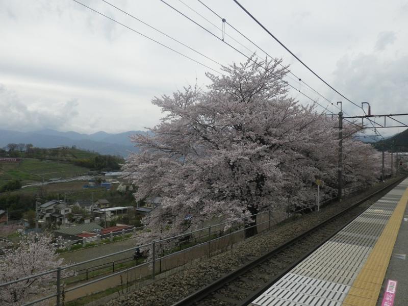 勝沼ぶどう郷駅に着くと、ホームから桜・桜・桜!!!