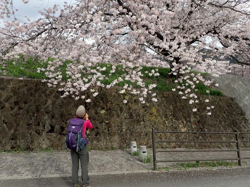 大月はすっきりしない曇り空。それでも道中に咲く桜や足元の春の花を愛でながら行けば、自然と心が弾んできます。久しぶりに会う渡辺さんとおしゃべりがとまりません。