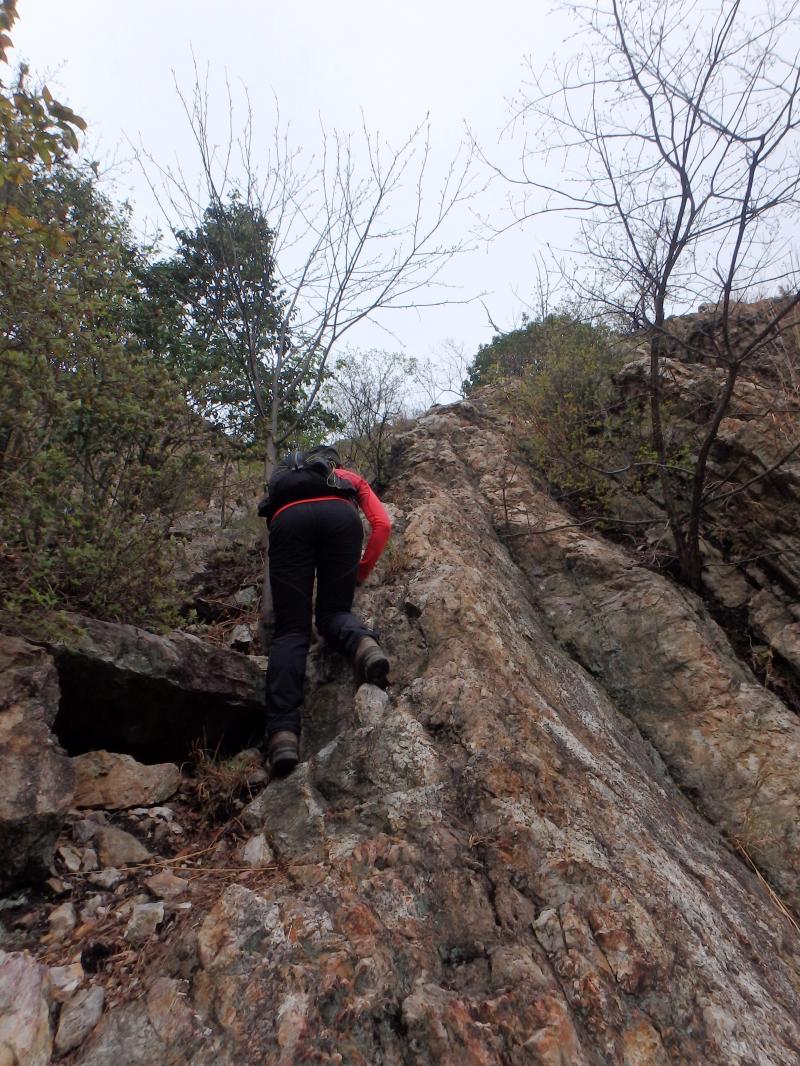 赤いペンキの矢印の示すルートは垂直に近い壁を登ったりと、スリリングな岩場が続きます。