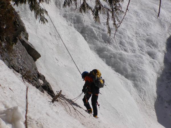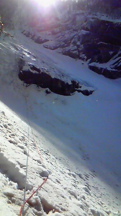 氷らしい斜面は4~5P目くらいまでない。雪が降ってしまったのと、傾斜もそこまでないから。