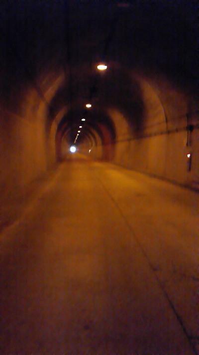 アプローチは高瀬ダムまで長いトンネルを何個も歩きます。トンネルの外は雪。