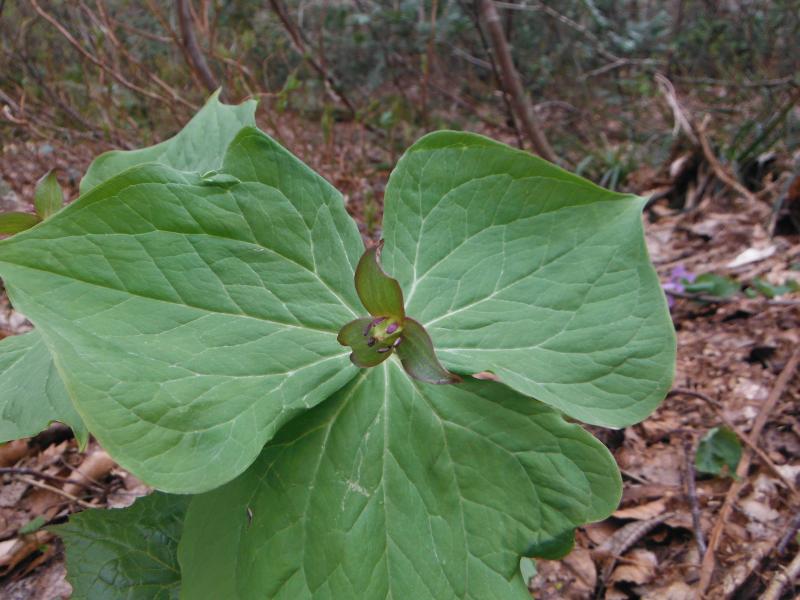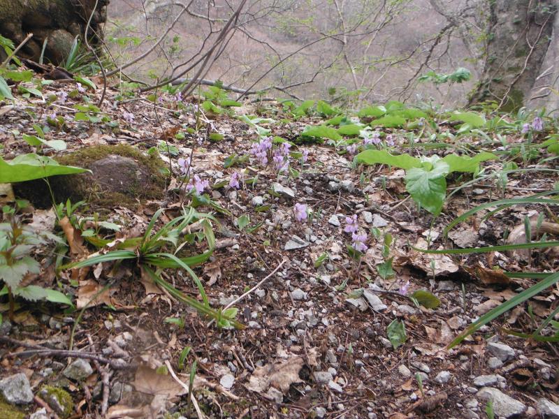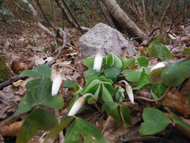 大山はようやく春がはじまった感じで、ブナやミズナラの木々はほとんど若葉はなく、タムシバの花が目立っていました。上を見上げると春はまだまだでしたが、元谷から大山寺に降りる途中にはエンレイソウやアオイスミレ、ミヤマカタバミなどが咲き始めていました。