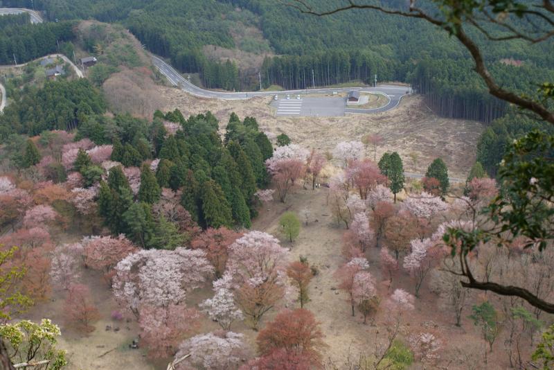 屏風岩から見下ろす公苑の山桜はなかなか見応えがあります。