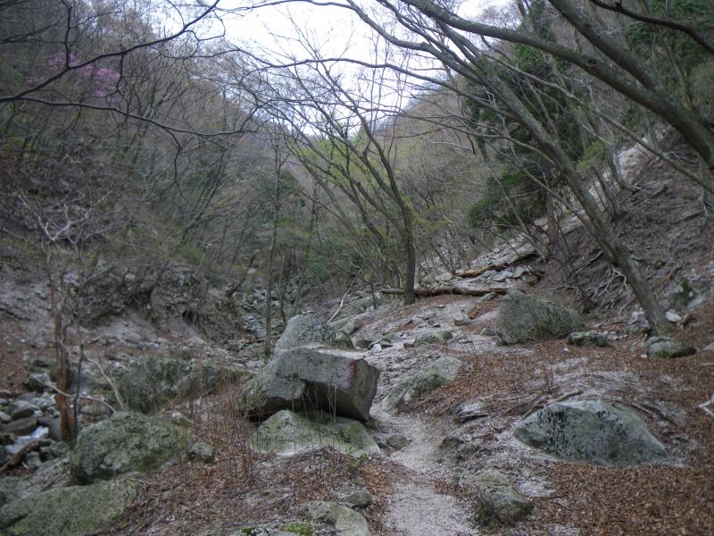 ⑤長石谷源流部はゴロゴロした岩の急な道です