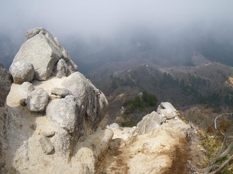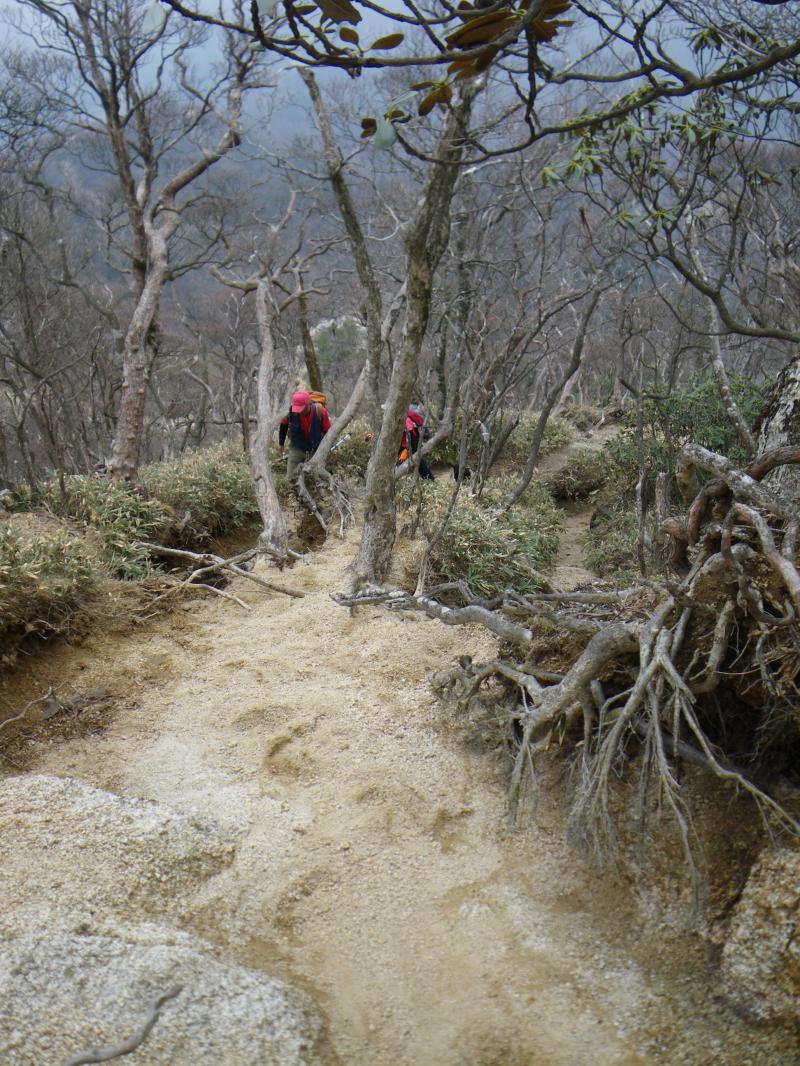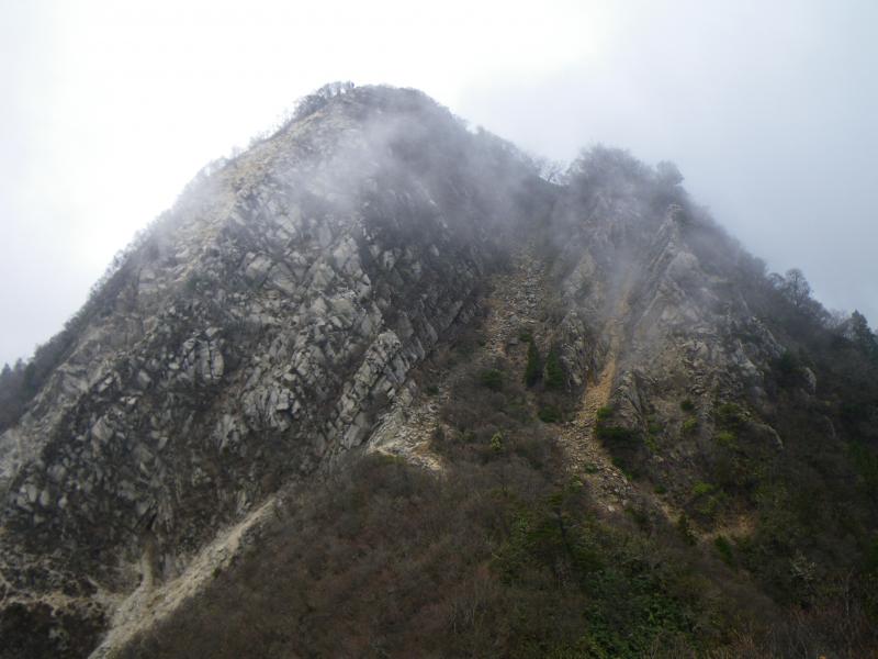 ⑧長石尾根は上部はロープ付のザレた滑りやすい道です