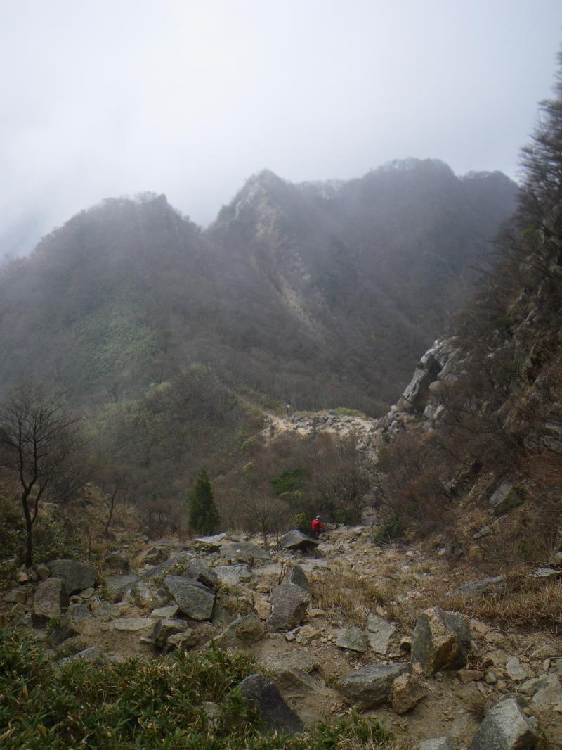 ⑥岳峠から鎌ヶ岳も見た目はガレ場ですが、そんなに難しくはありません