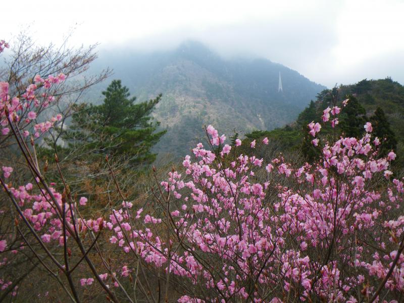 感じで何度か渡渉するものの、ほぼ沢沿いで高巻きのような感じはなく、難しくはなく、マーキングもしっかりしています。長石谷では目当てのイワザクラ・ショウジョウバカマ・イワウチワ・キランソウが見られました。長石尾根は上部はザレた道が多く、崩れている箇所もあります。その崩れている箇所にアカヤシオがあるので、道をはずして降りたくなります。こちらもマーキングがしっかりしていて、問題はありません。今日はガスがでていて、御在所岳の展望がなく、アカヤシオと御在所岳という構図が撮影できなく、残念です。長石尾根ではハルリンドウ・イワウチワ・バイカオウレン・ショウジョウバカマ・アカヤシオが見られました。アカヤシオはまだこれからという感じですが、まとまって咲いている箇所もありました。遠望ですが、雲母峰方面の尾根にもピンク色の姿がちらほら咲いていて、新緑とマッチしていい風景ですね。