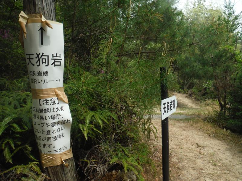 - 駐車場(1時間)鶏冠山(40分)落ヶ滝(30分)天狗岩線(1時間)耳岩(10分)天狗岩(40分)駐車場