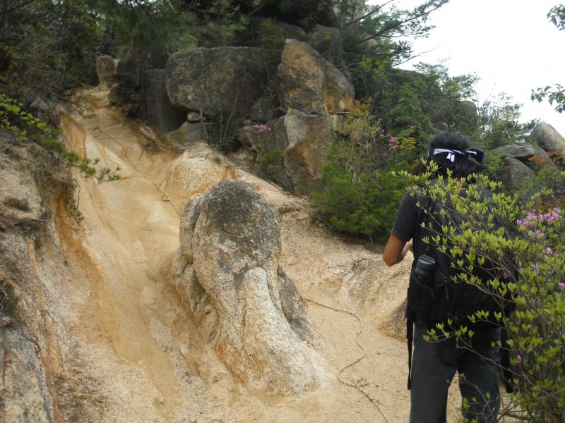 また、ザレたところや一枚岩の斜面のところはロープがありますが、慎重に通過しましょう。
