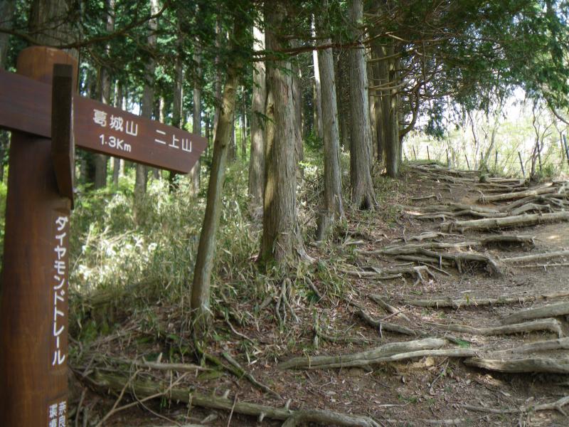 - 水越峠登山口(43分)展望地(15分)ツツジ園(15分)大和葛城山(10分)自然研究路入口(23分)北尾根出合(36分)葛城ロープウェイ前