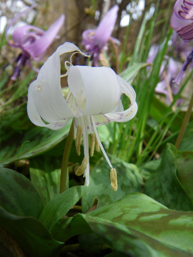 ⑤カタクリはツツジ園一帯と水越峠からのダイトレ道と山頂付近の草原と自然研究路に咲いています
