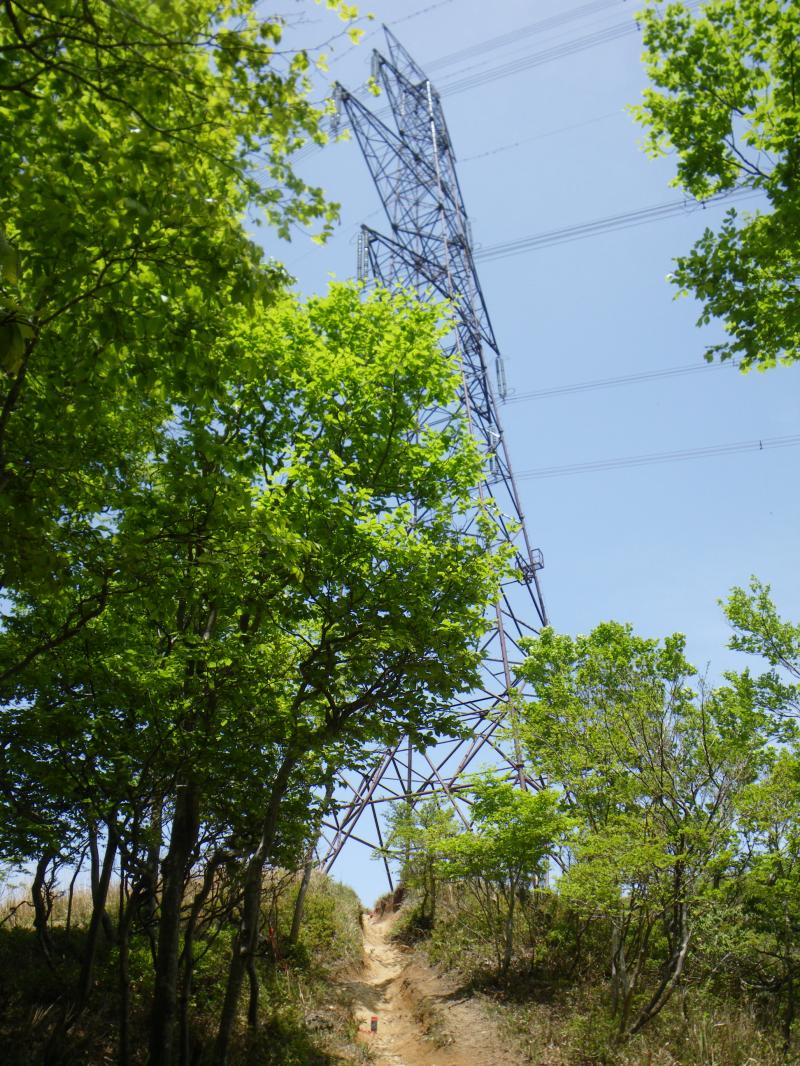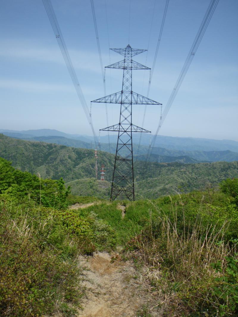 ⑲国境スキー場への下山道は乗鞍岳北尾根から下降し、1本目の鉄塔が目印。今回は国道161号へ行く尾根道を下りましたが、沢まで下り、登りかえして林道に出ました。