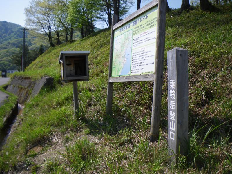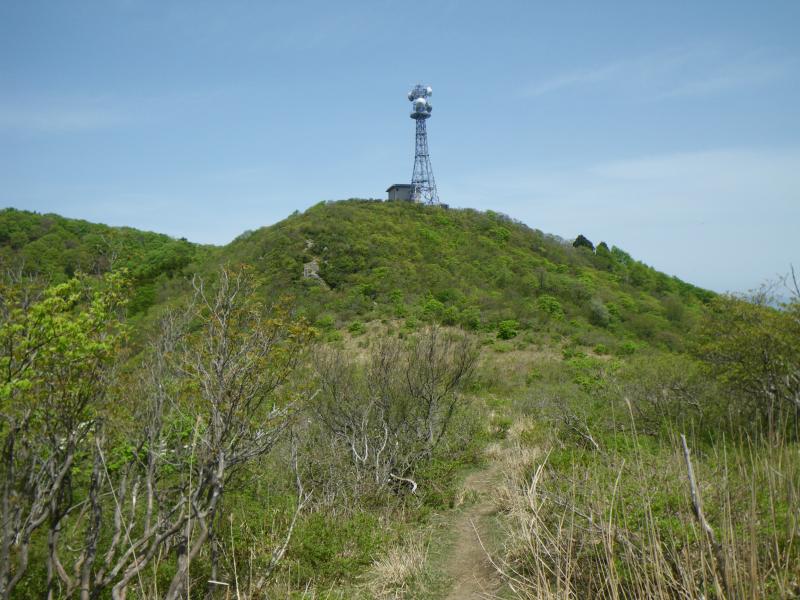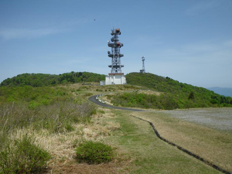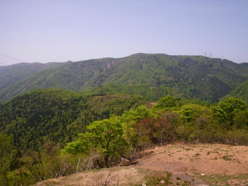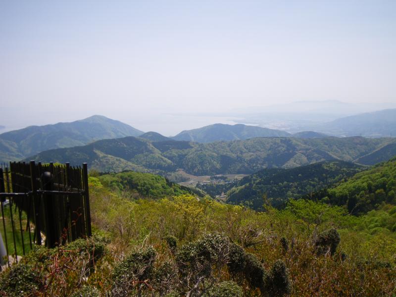 乗鞍岳(のりくらだけ・825m)は高島トレイルの北端の山で、馬の背に鞍を置いた姿に見えることから由来しています。山麗には国境スキー場を控え、冬は豪雪地帯として知られます。山頂南側には電波塔の広場があり、頂上よりここからの眺めの方が抜群で日本海と琵琶湖が同時に見えます。またこの付近に小ぶりですが、カタクリがたくさん見られます。黒河峠から登ってくるとブナ林が多く癒され、高島トレイルらしさが味わえましたが、送電線が2本、山沿いに走っており、常にこの送電線を追いかける感じになります。登山道も関電歩道が多く、独自の黒の階段が数回出てきます。