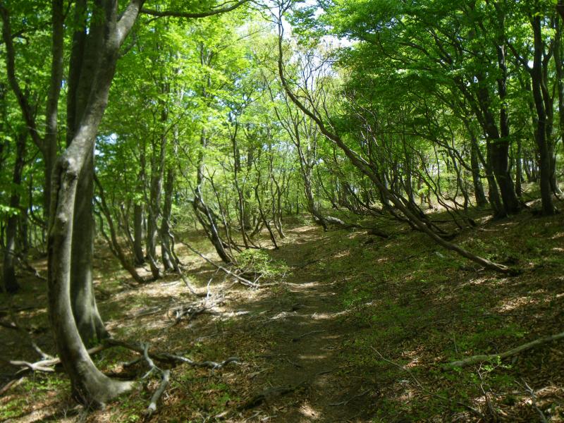 ⑮黒河峠~乗鞍岳間は送電線を追っかける形になり、送電線の下に出ると見晴らしがよくなります。また黒河峠から猿ヶ馬場付近のブナ林の道はすがすがしく、気持ち良いです