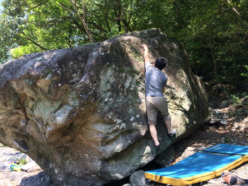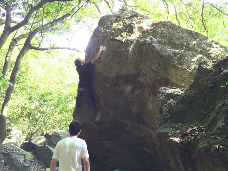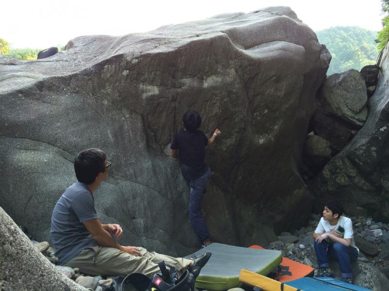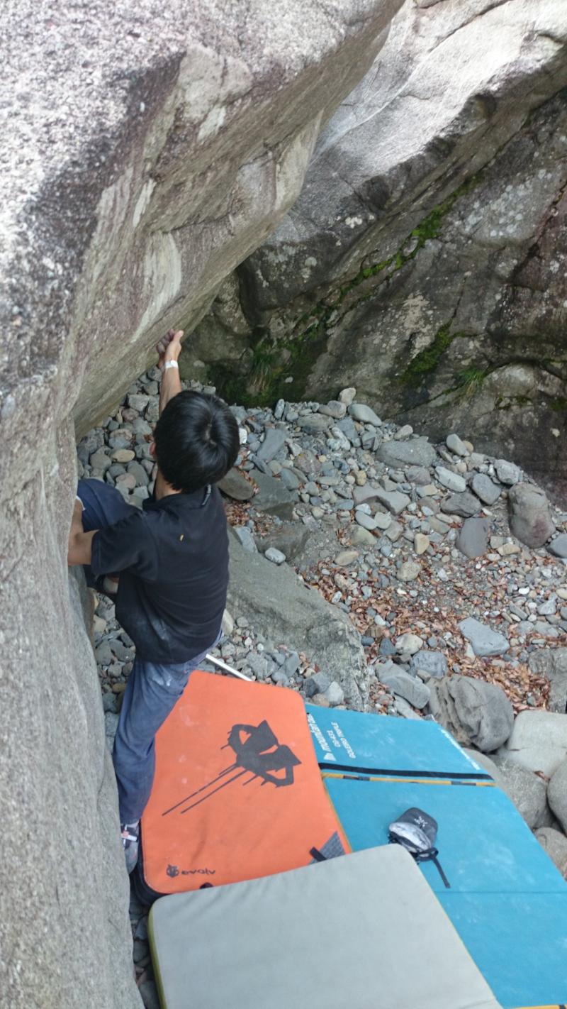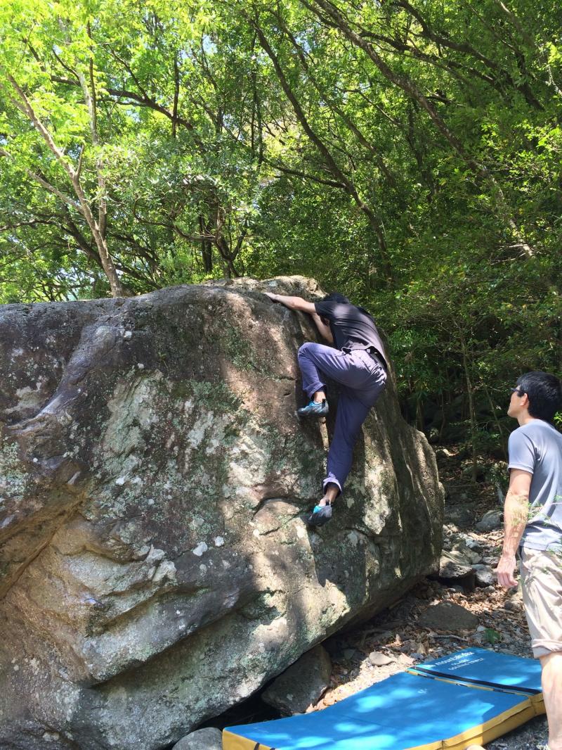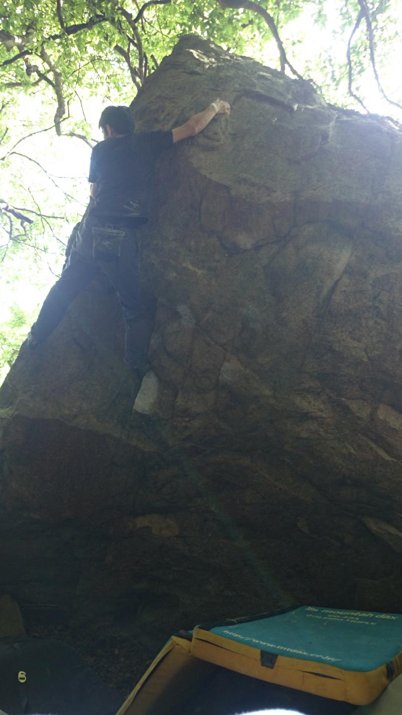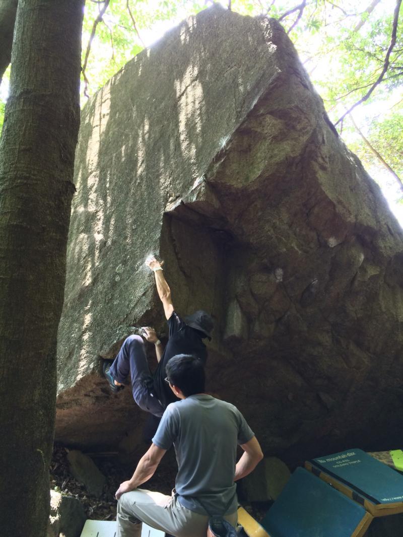 日が当たっている岩を避けて登りましたがそれでもフリクションは良くなくて敗退となりました。