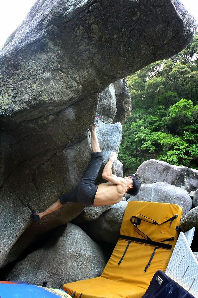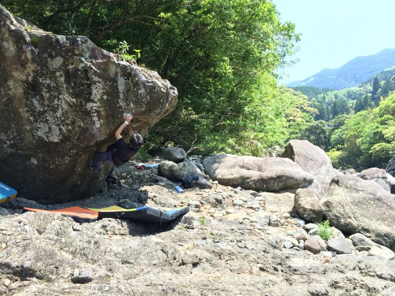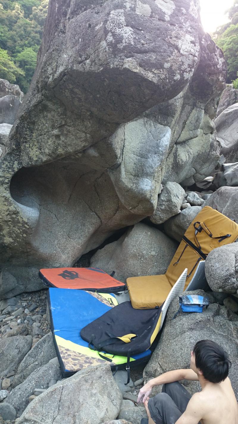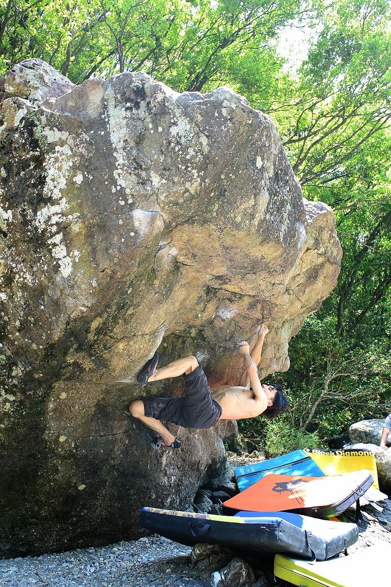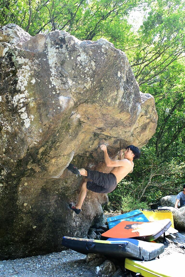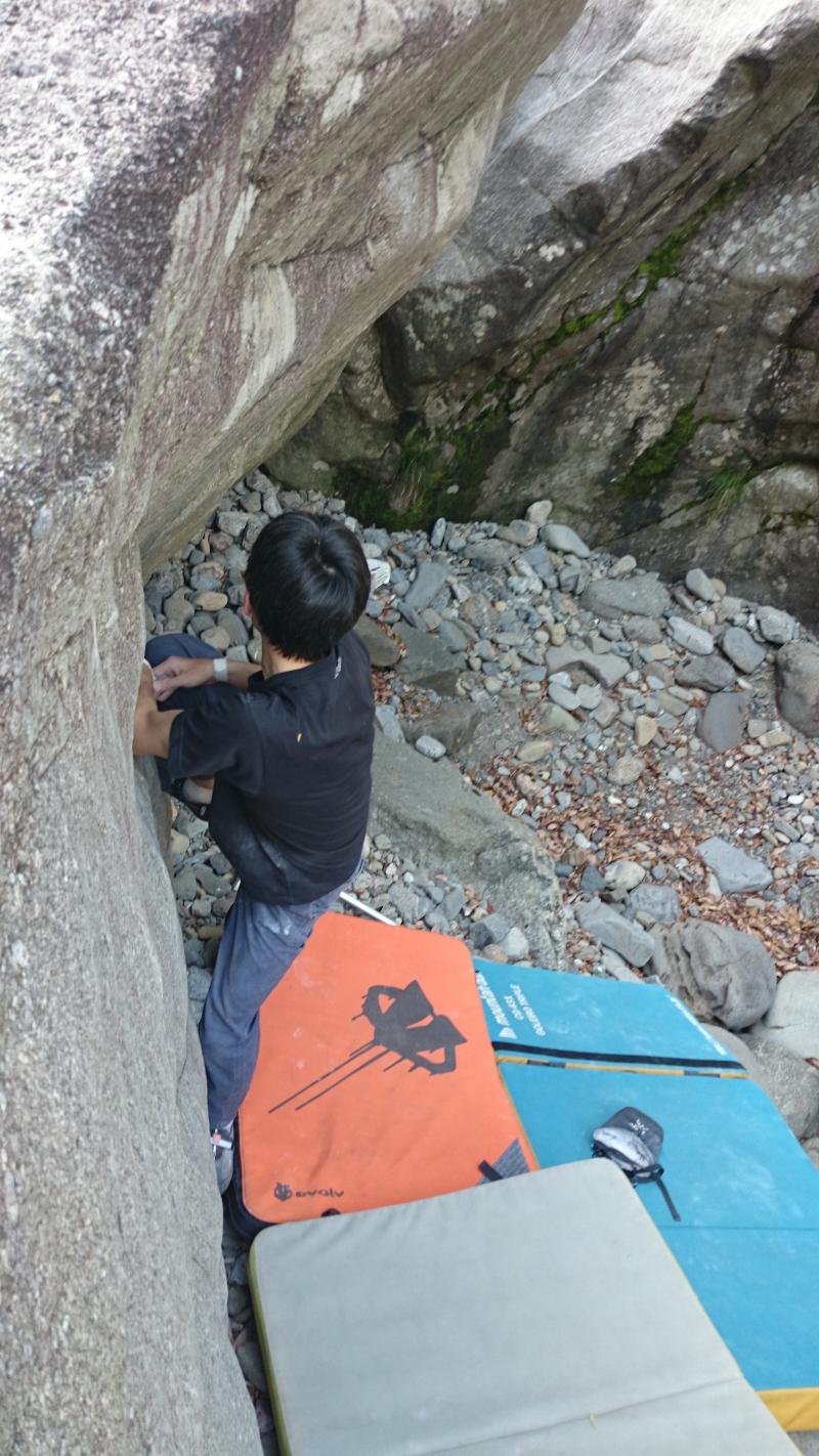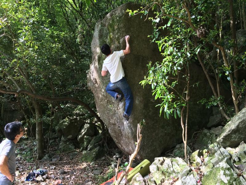 日が当たっている岩を避けて登りましたがそれでもフリクションは良くなくて敗退となりました。