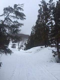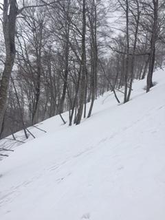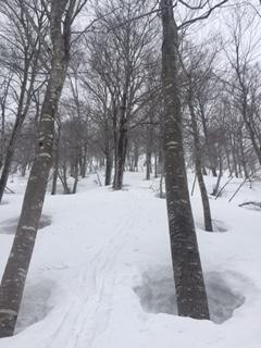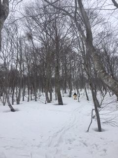 せっかく来たので、少しだけ斜面を上がり、林間を滑ってみた。