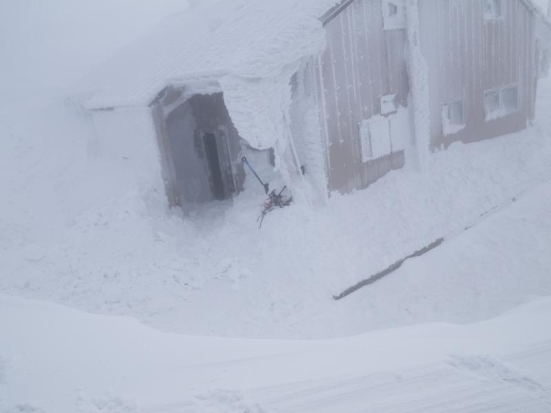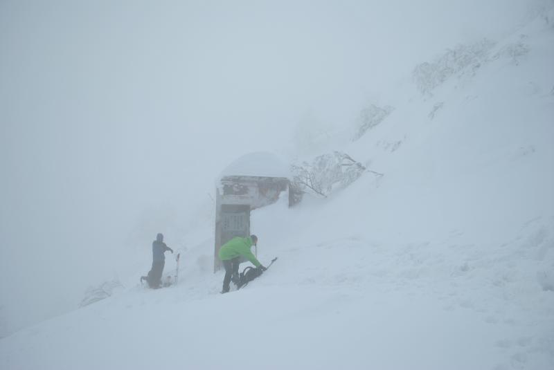 昨年に比べ雪が少なく、六合目の避難小屋が全く埋まっていませんでした。