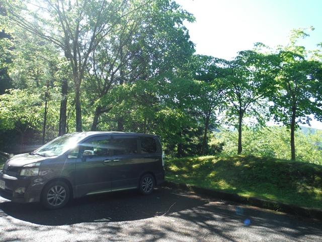 駐車スペースに通じる林道は夏期にはゲート閉鎖され