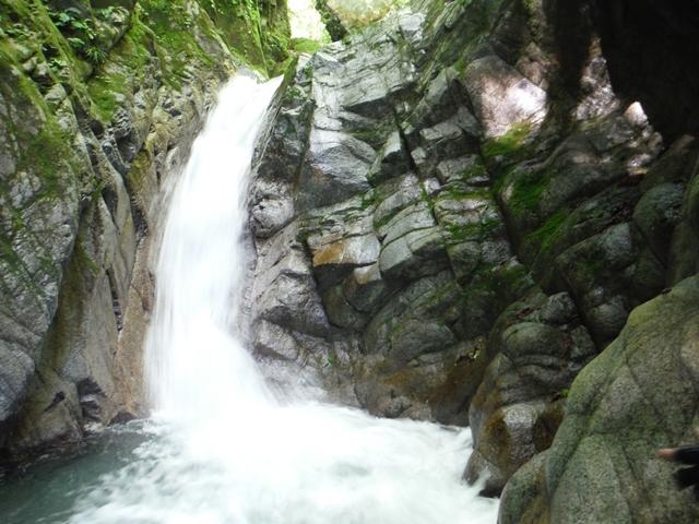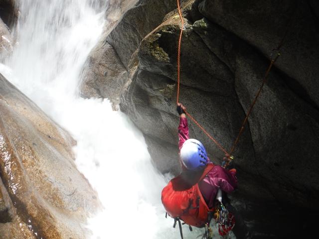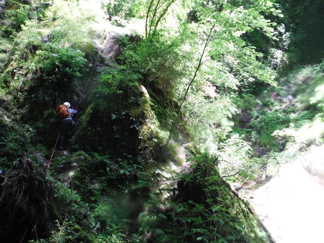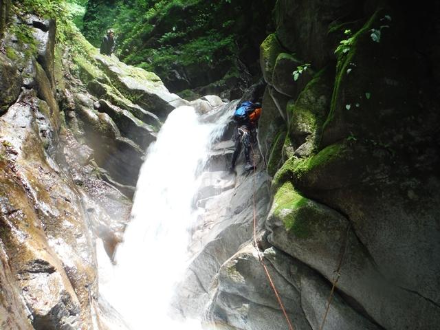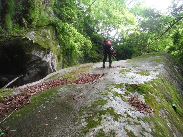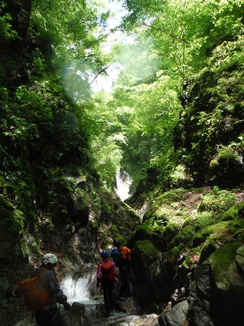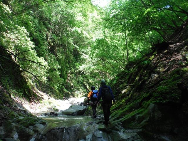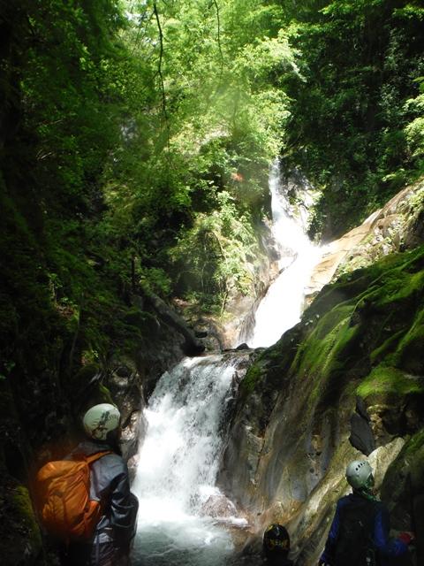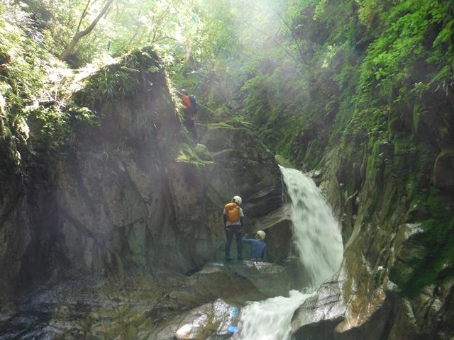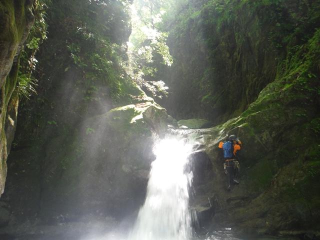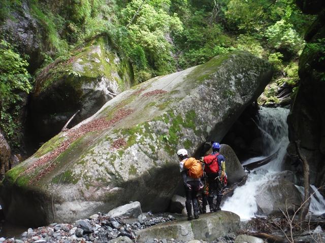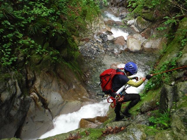 小滝をいくつか快適に通過し 大岩は残置されていたロープを使用。