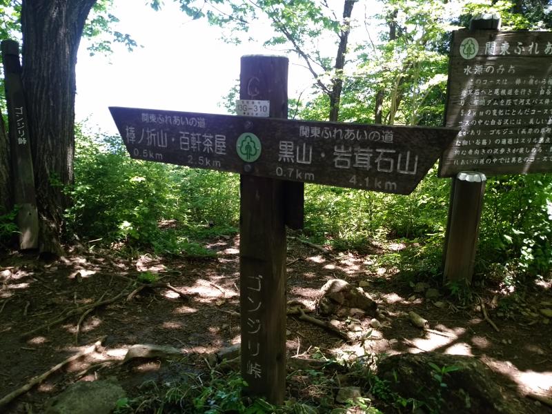 - 駐車スペース(30分)登山口(120分)権次峠(15分)棒ノ折山(棒ノ嶺)(15分)岩茸石(80分)駐車スペース