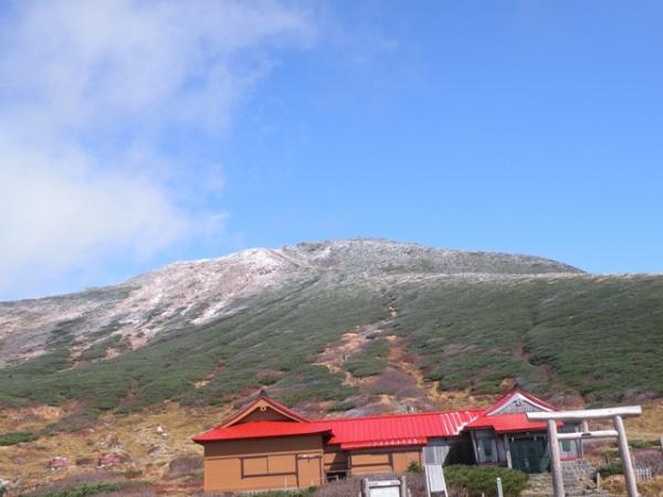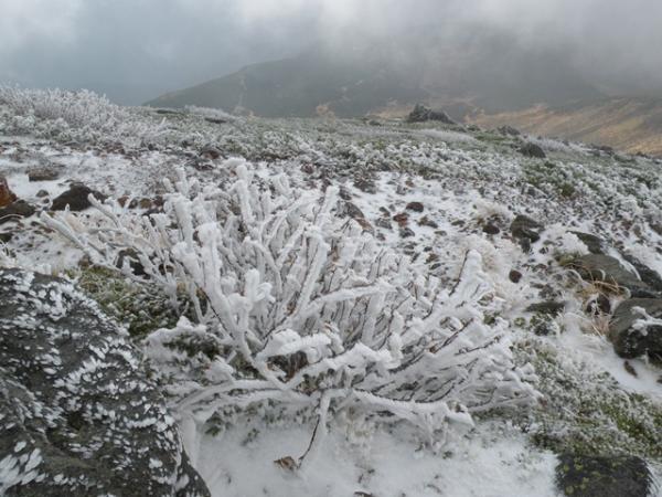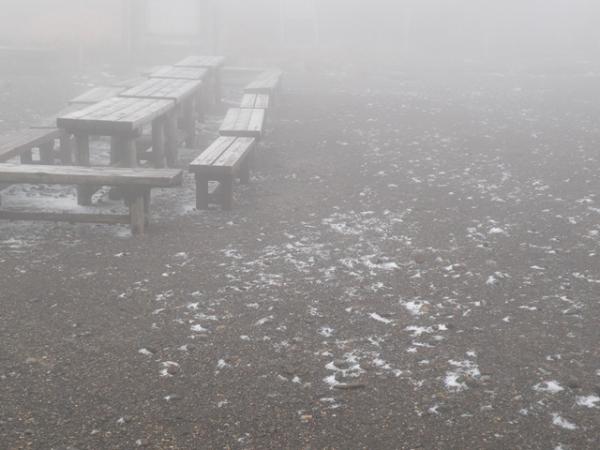 頂上付近は、薄っすら雪化粧。寒いので少しして、下山。