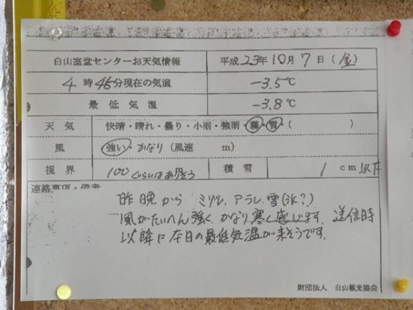 - 晴れのち曇りのち小雨(頂上付近は、霰)