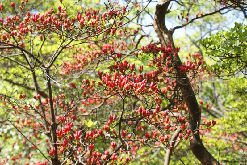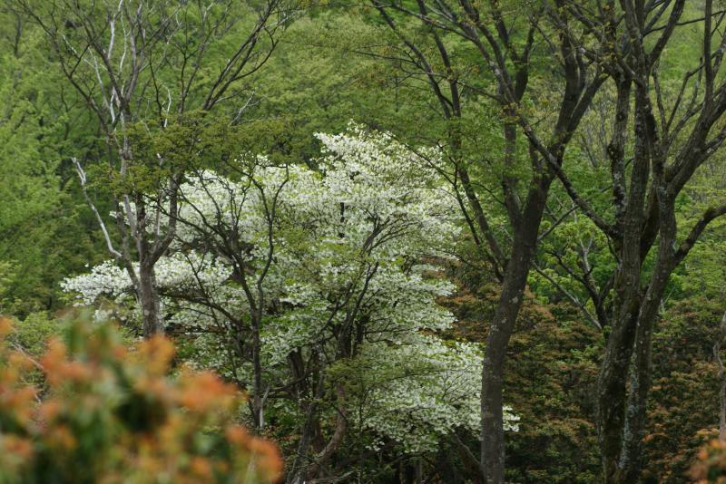 徐々に高度を上げながら登ると遠足尾根が見えて、シロヤシオも少し開花し始めていました。