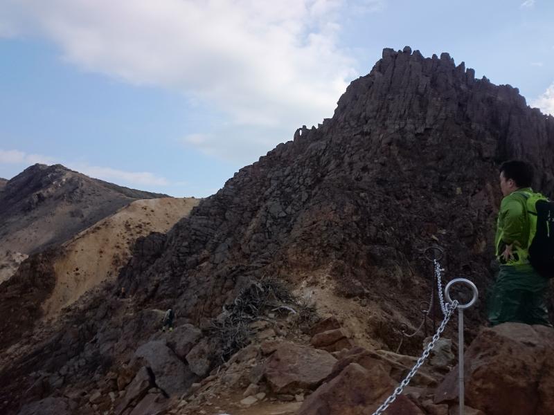 岩稜帯中心で展望も開けている歩いていて楽しい那須岳。