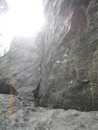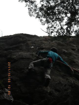 上の岩場のコーナークラック5.7 パワーシフト5.11bc 涅槃の風5.10b 鬼太郎音頭5.10bc ドロボーカササギ5.11a クラックジョイ5.9 などにそれぞれがとりつく。