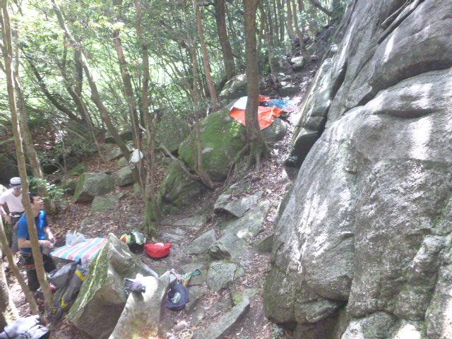 岩場に到着すると先客が一人。見覚えがある方…と思っていたら以前に油山に行ったときに岩場を整備をしていた方でした!偶然過ぎて驚きましたが、油山同様に福岡市から近いこの岩場ももっと登っていただけたら嬉しいです、とおっしゃっておりました。楽しく安全にクライミングができるのもこういった方々のおかげだと再認識。いつも整備してくれる方への感謝の気持ちは忘れないようにしたいものです。