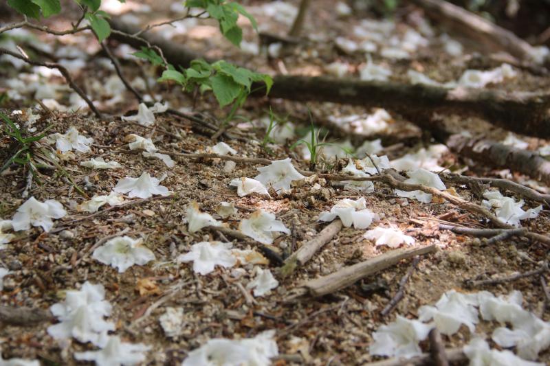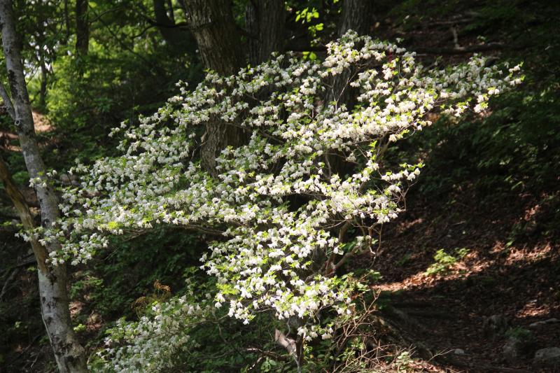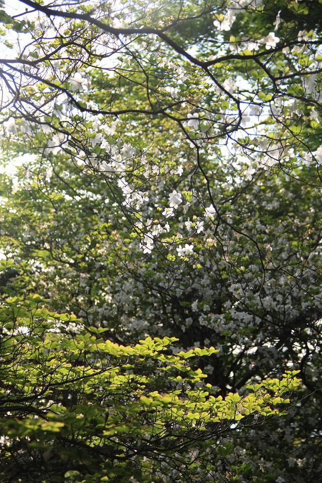 850mの標高までのぼると風景変わり、シロヤシオが現れます。