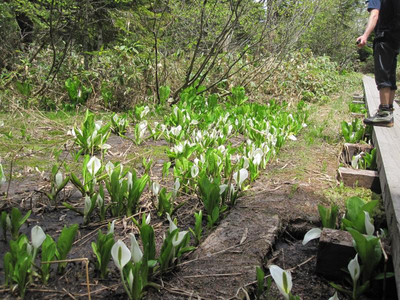 5/20から運行開始したばかりの関越交通夜行バス尾瀬号を利用して尾瀬戸倉まで行き、シャトルバスに乗り換えて鳩待峠に入りました。平日ということもあり、バスも尾瀬自体もとても空いていました。水芭蕉は例年より3週間程早く尾瀬ヶ原ではもうほぼ終わりで、尾瀬沼の辺りや燧ヶ岳から御池へ下るルート上はまだギリギリ咲いていました。タテヤマリンドウ、イワナシ、シラネアオイ、ワタスゲなど、その他たくさんの春の花が咲いていました。