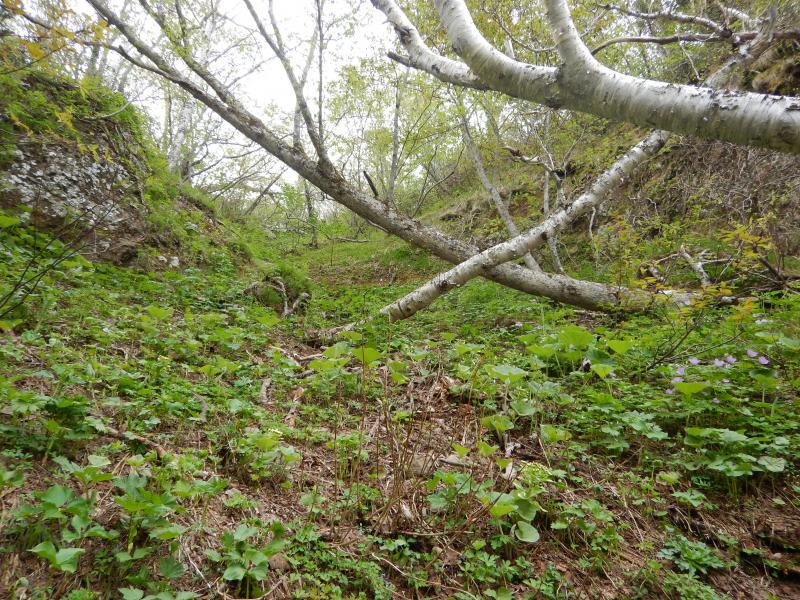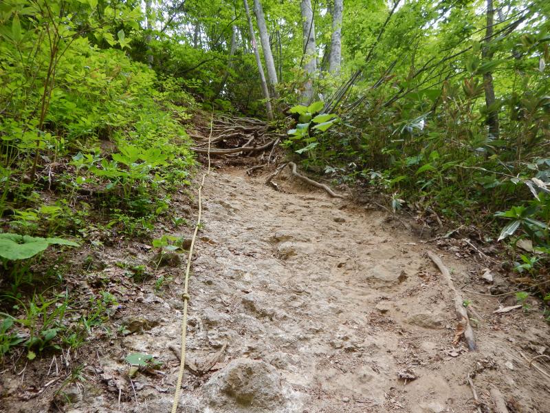 危険個所 神威岳~烏帽子岳までの稜線上 東側が切れ落ちているため、滑落注意。また道が悪いため、転倒にも注意。