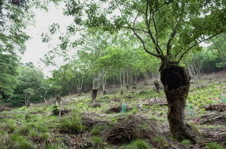 台場クヌギは炭を作るために切った幹から生えた幹を定期的に切るため独特な形の木で妙見山の登山コースで見ることができます。