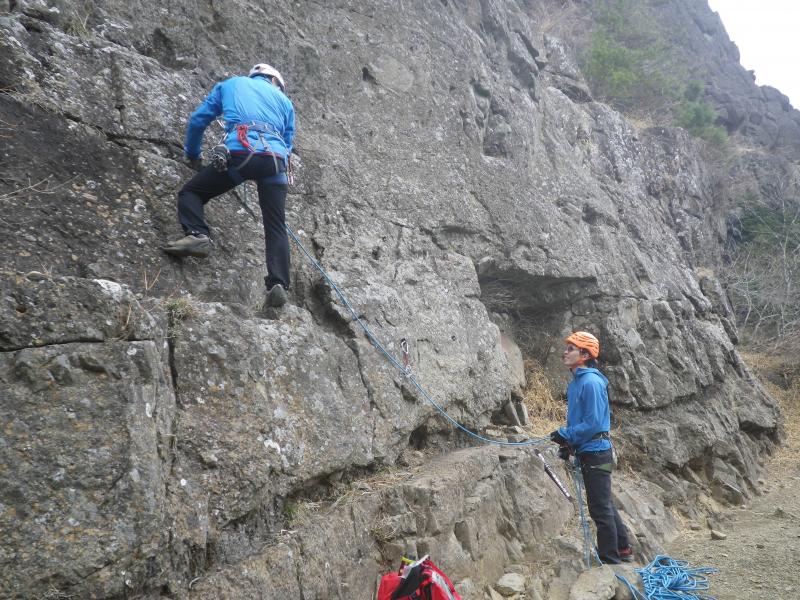 研修の内容は、ロープのまとめ方、リードでの登り方・ビレイのやり方、支点の作り方、懸垂下降などです。