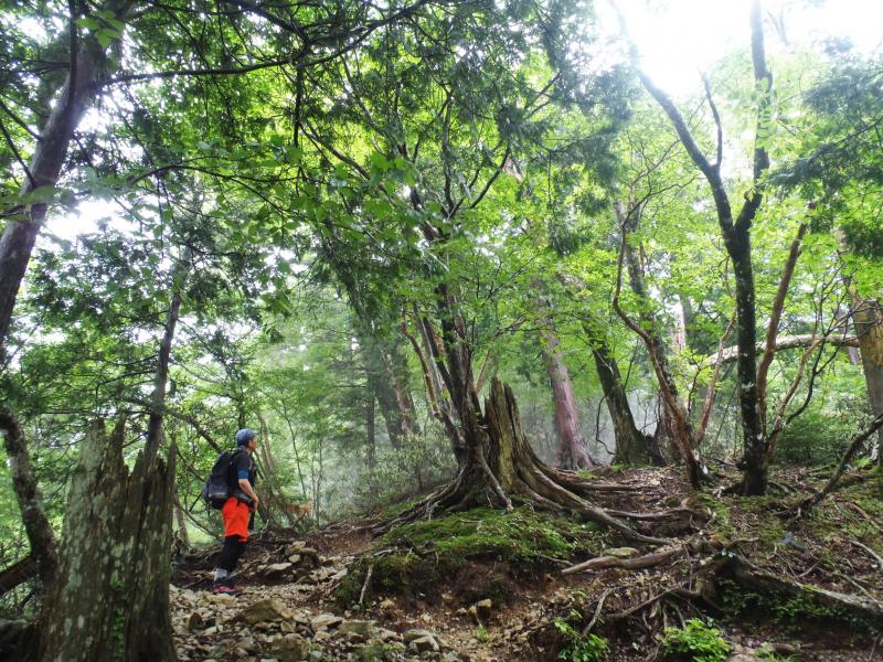- 行者還トンネル西口 登山口 ⇒60分⇒ 奥駈道出合 ⇒25分⇒ 弁天の森 ⇒25分⇒ 理源大師像 ⇒50分⇒ 弥山小屋 ⇒25分⇒ 八経ヶ岳(1915m) ⇒18分⇒ 弥山小屋 ⇒25分⇒ 理源大師像 ⇒25分⇒ 弁天の森 ⇒45分⇒ 登山口