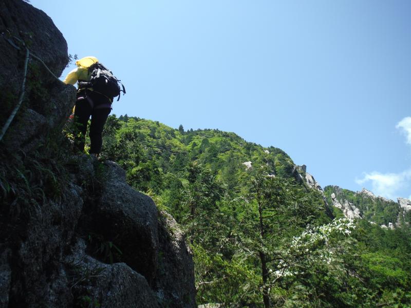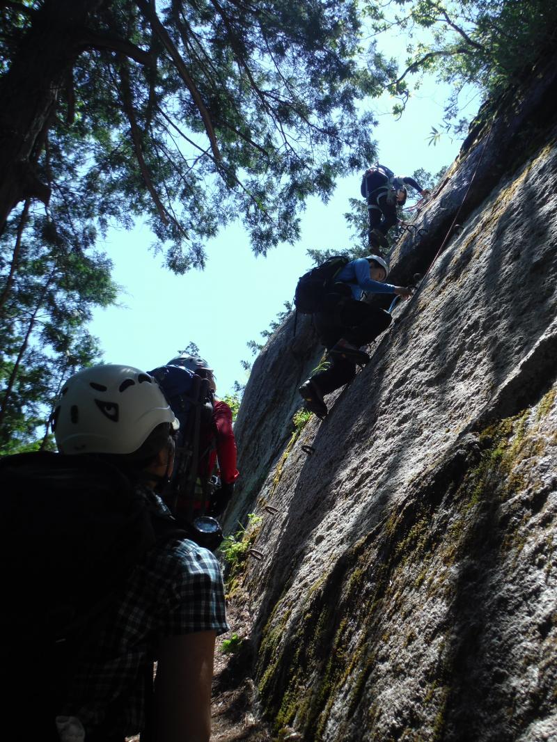 基本的には岩場のコースになります、岩場にはステップが打ち込んであったりフィックスロープが張ってあったりと整備がされていますが高度があり落ちたら命の保証がない箇所が多いのでセルフビレイはしっかりととりましょう。(ヘルメット、ハーネル必要)