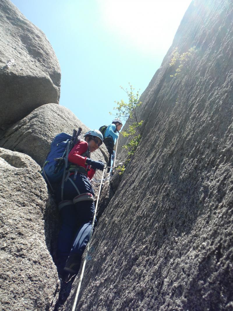 裏道・中道などの一般登山道や前尾根・藤内壁などのクライミングエリアの中間的なコース、ヨーロッパなどでは見かけますが日本では珍しいコースではないでしょうか。