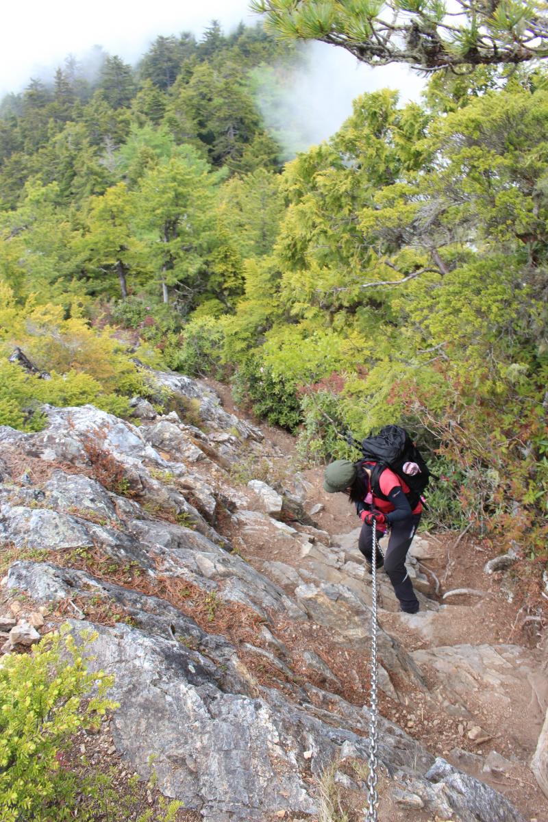三宝山から十文字峠への尾根道はアップダウンや鎖場があります。