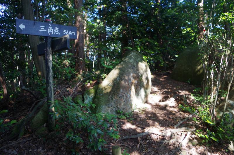 山頂よりも三角点の有る場所は低いのですが、全般的に樹林の中で、展望台以外ロケーションは有りません。