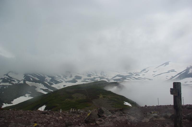 麓はまもなく夏ですが、大雪山系はまだ残雪も多く残ってます。一度荒れると上部は吹きっさらしの地形が多いのも大雪の特徴です。入山の際には十分天候に注意してください。