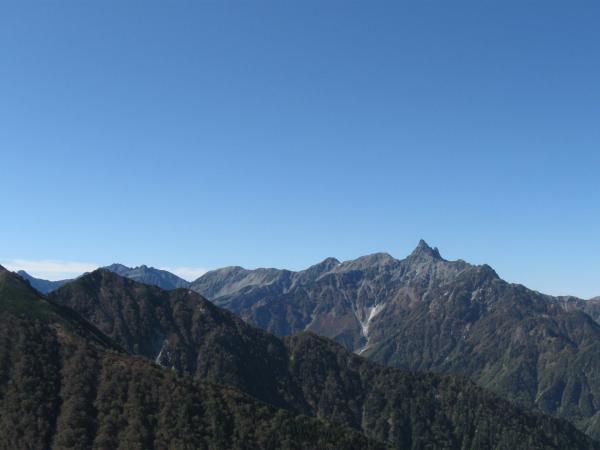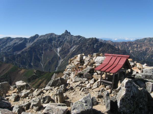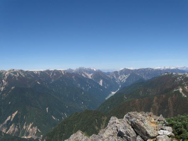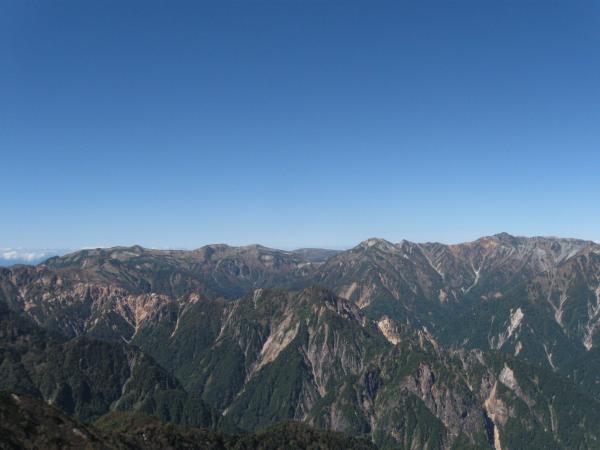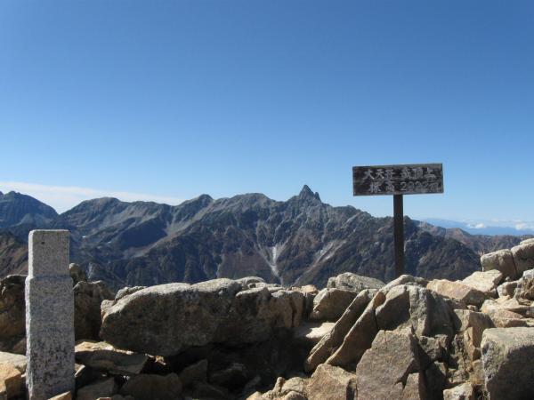 大天井岳の山頂からは槍穂の稜線はもちろん、遠く南には富士山・八ヶ岳・南アルプス、北側には剣岳や雪化粧した白馬・五竜などいろいろな山が見渡すことができました!!